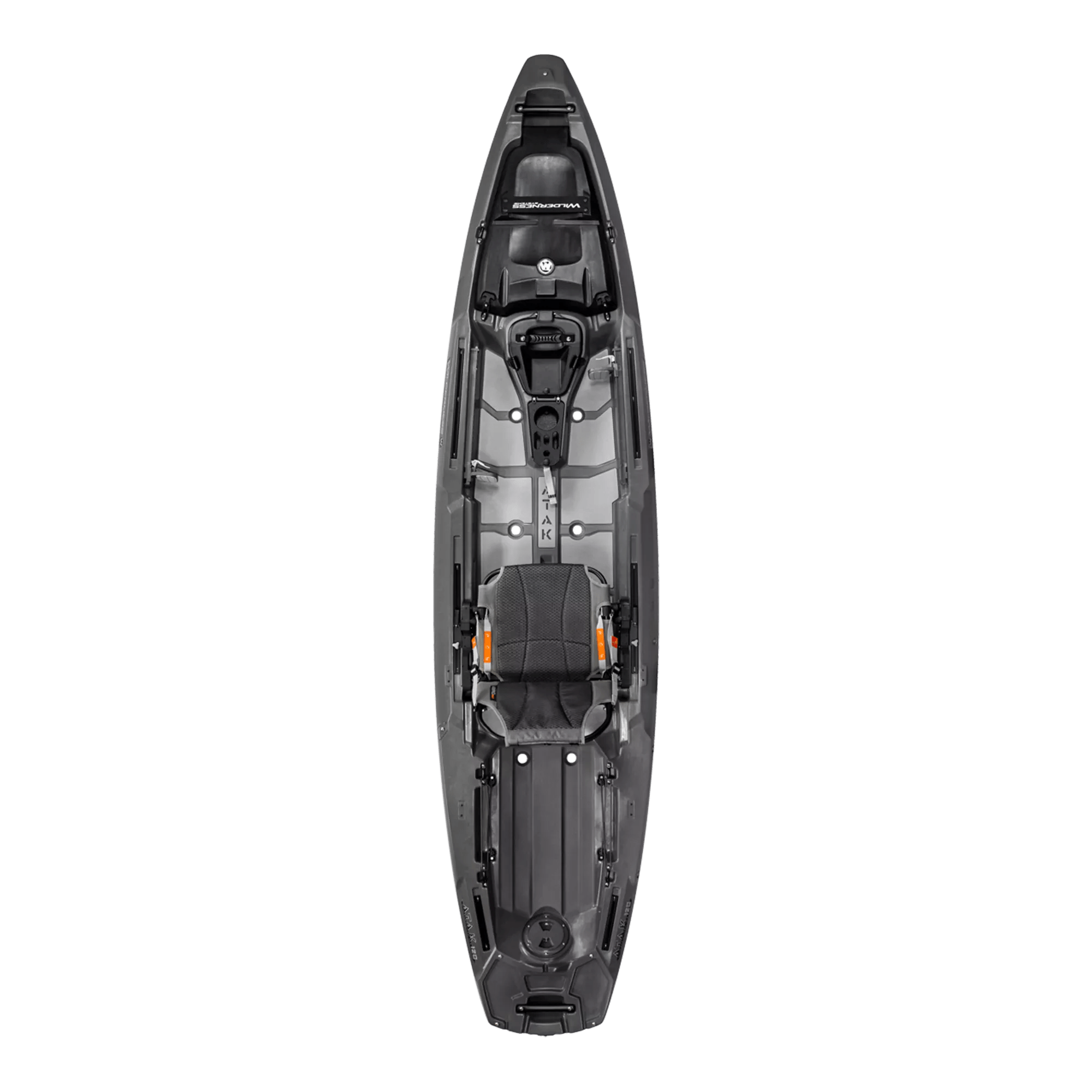 The A.T.A.K 120 boasts all the core attributes of a premium fishing kayak: an open customizable platform, unmatched stability, and a wind-shedding deck, with additional specialized performance features. The new and improved rocker allows for better movement through water currents, and a secondary transducer scupper has been added to accommodate electronic devices, including side-scanning technologies. Additionally, the AirPro MAX seat comes with a quick-release cam lever that enables you to adjust its position seamlessly.