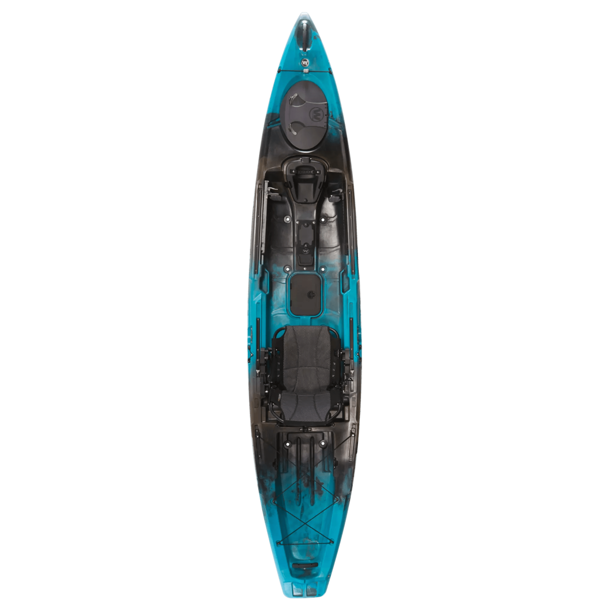 Essential angling features such as SlideTrax™ rails for accessories, front paddle park, multiple hatches, and generous tank well storage; Also features large, padded footrests that can be adjusted to accommodate paddlers of different sizes