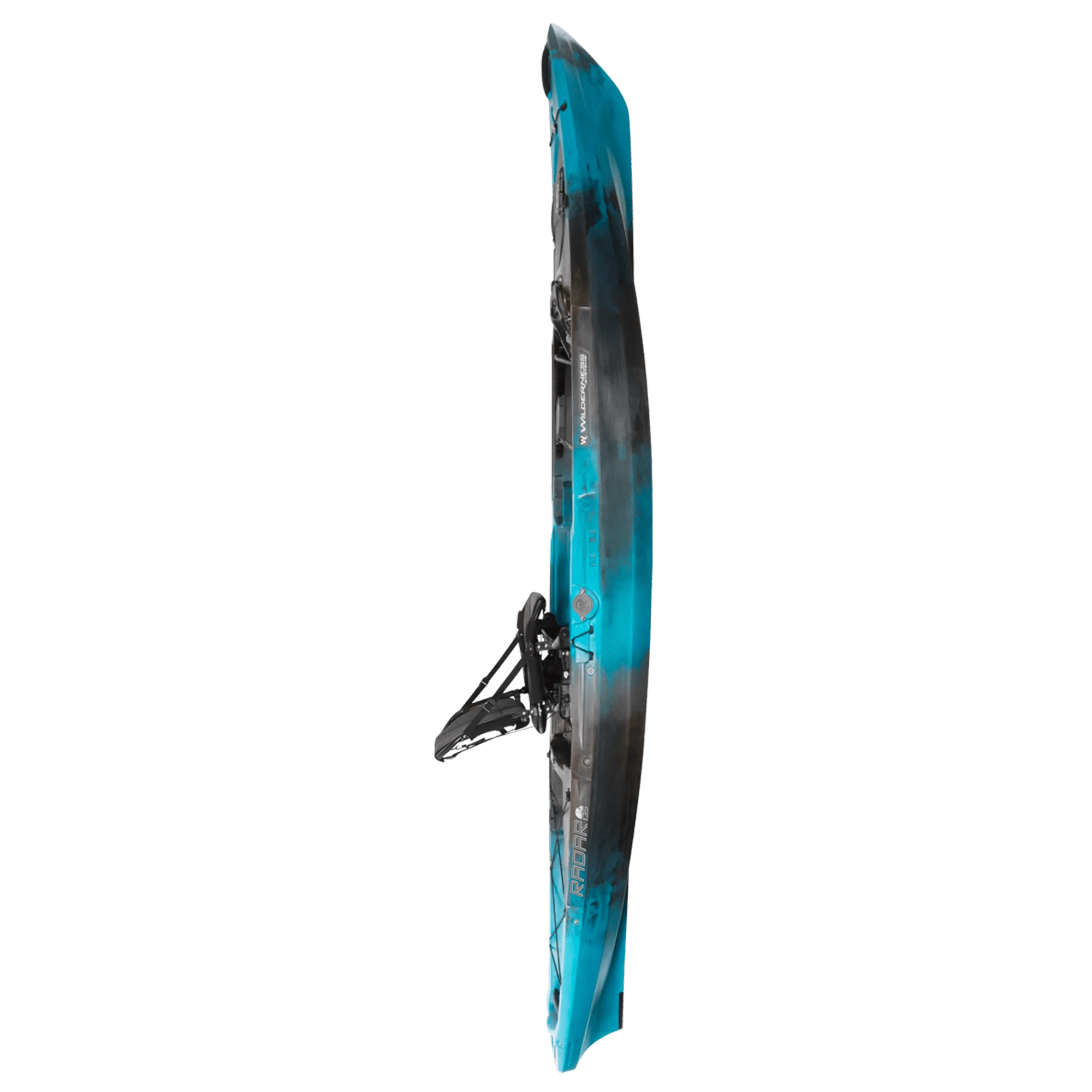 The Radar 135 features S.M.A.R.T. Hull Technology that combines Stability, Maneuverability, Acceleration, Responsiveness and Tracking throughout the entire design for ultimate performance in multiple water environments. In addition to a flat platform for standing and freedom of movement, the Radar boasts state-of-the-art outfitting, including expansive SlideTrax™ rails, many storage opportunities, and rudder steering. The Flexpod provides easy access to mount fish finders and the Helix PD™ Pedal Drive* is easily deployed from the integrated Scupper pod.The AirPro MAX complements the package with optimized positioning for any mode of travel.
