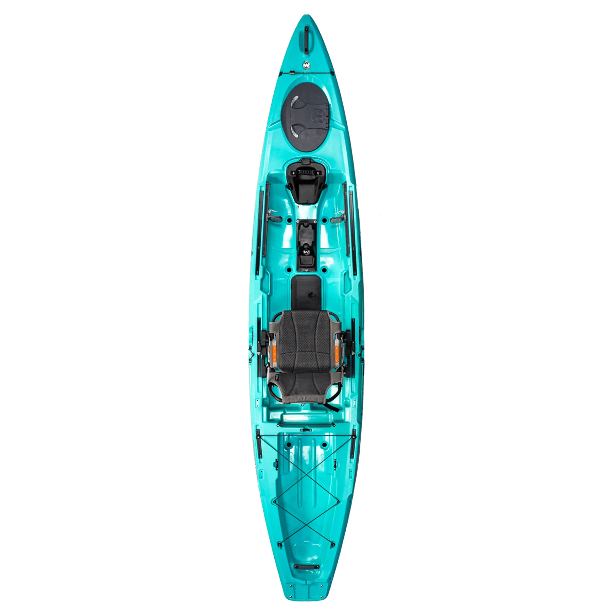 Essential angling features such as SlideTrax™ rails for accessories, front paddle park, multiple hatches, and generous tank well storage; Also features large, padded footrests that can be adjusted to accommodate paddlers of different sizes