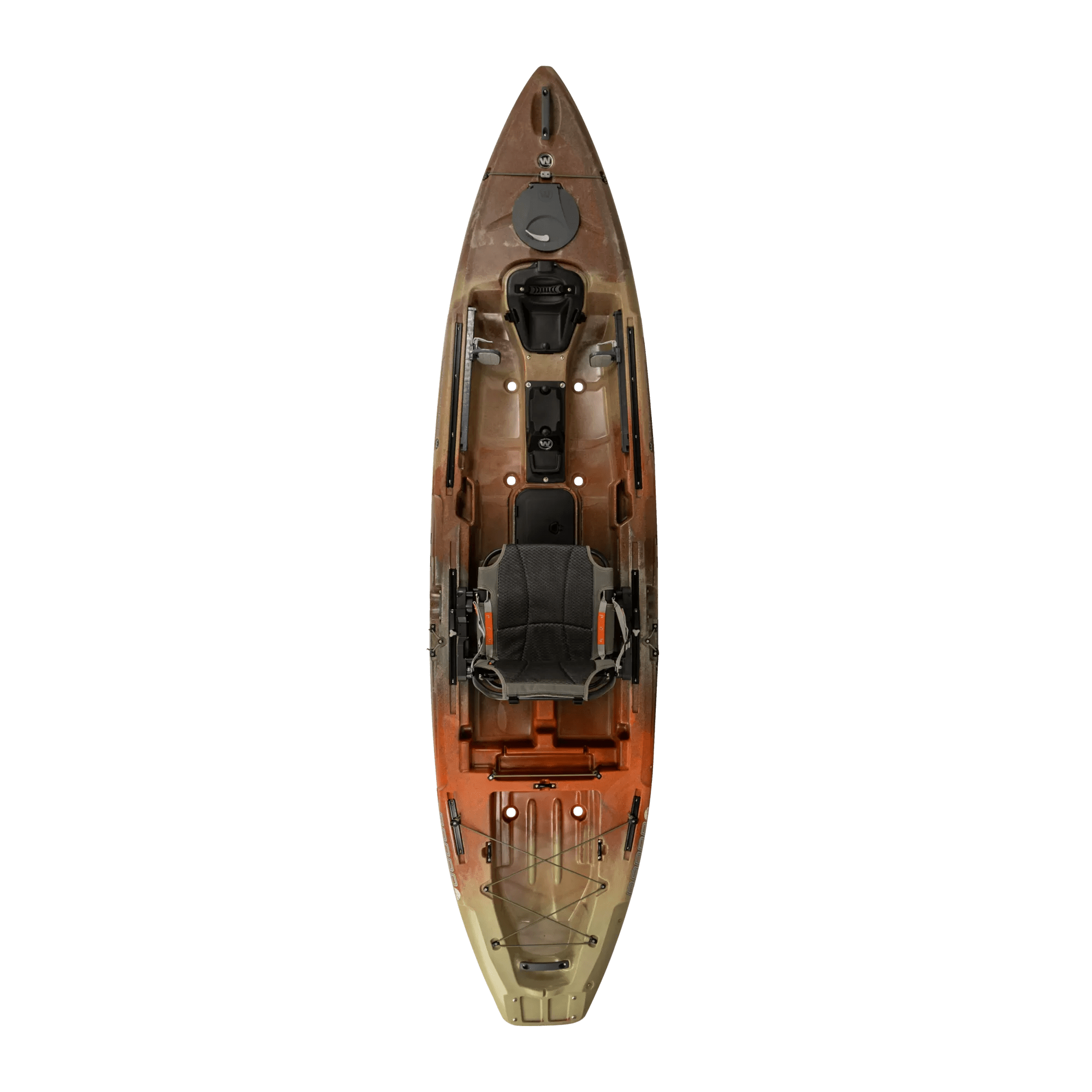 Essential angling features such as SlideTrax™ rails for accessories, front paddle park, multiple hatches, and generous tank well storage; Also features large, padded footrests that can be adjusted to accommodate paddlers of different sizes