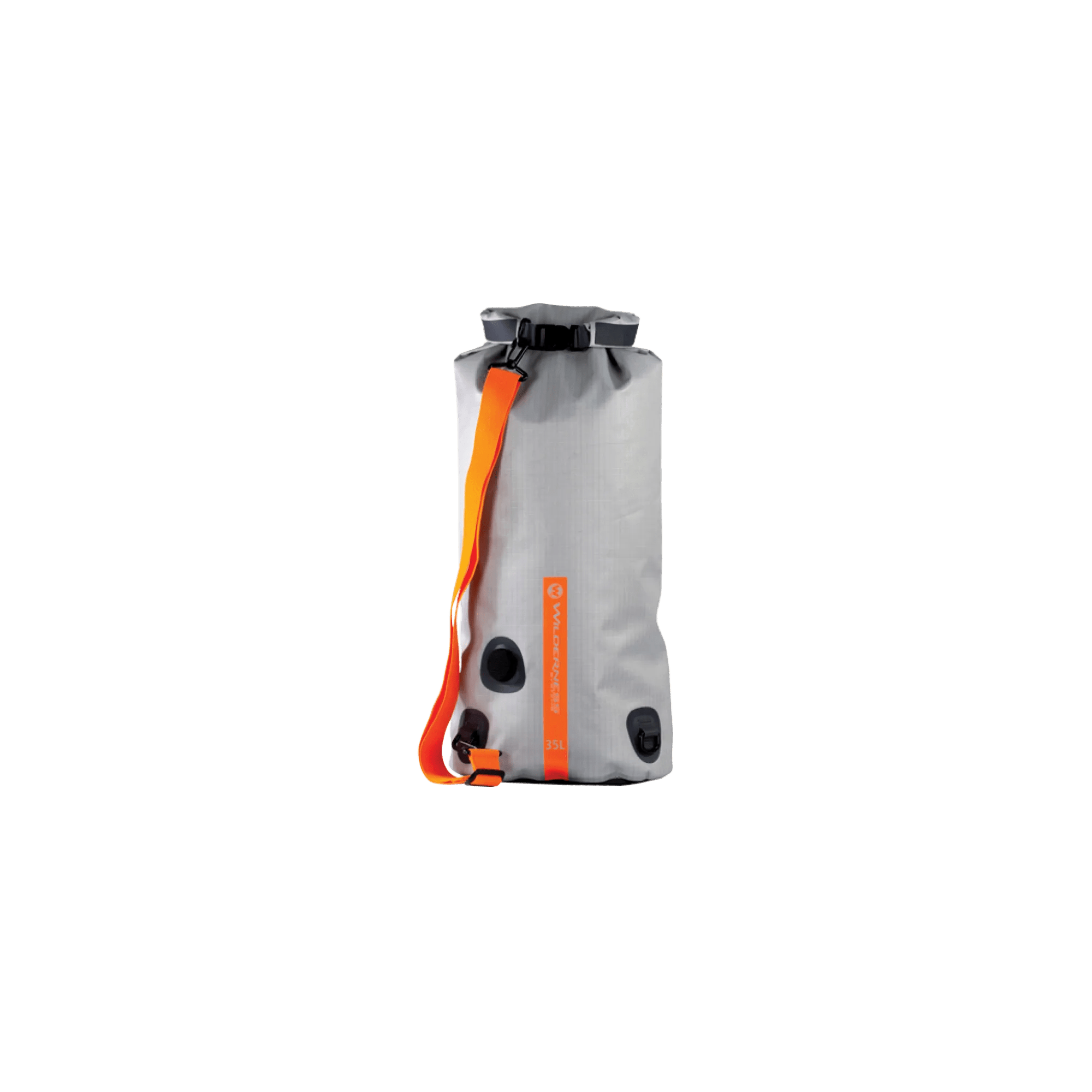 This innovative, versatile dry bag from Wilderness Systems expels unwanted air via a one-way waterproof valve for minimal pack size and can convert to a soft cooler with a Wilderness Systems freeze sleeve (sold separately). the roll-down style closure is dry and dependable and the full-welded seams offer durable and waterproof protection. Five lash-down points provided for easy anchoring on your kayak or boat. An oval-shaped bottom means this bag won't roll out of reach and an adjustable shoulder strap makes it easy to transport your gear on land.