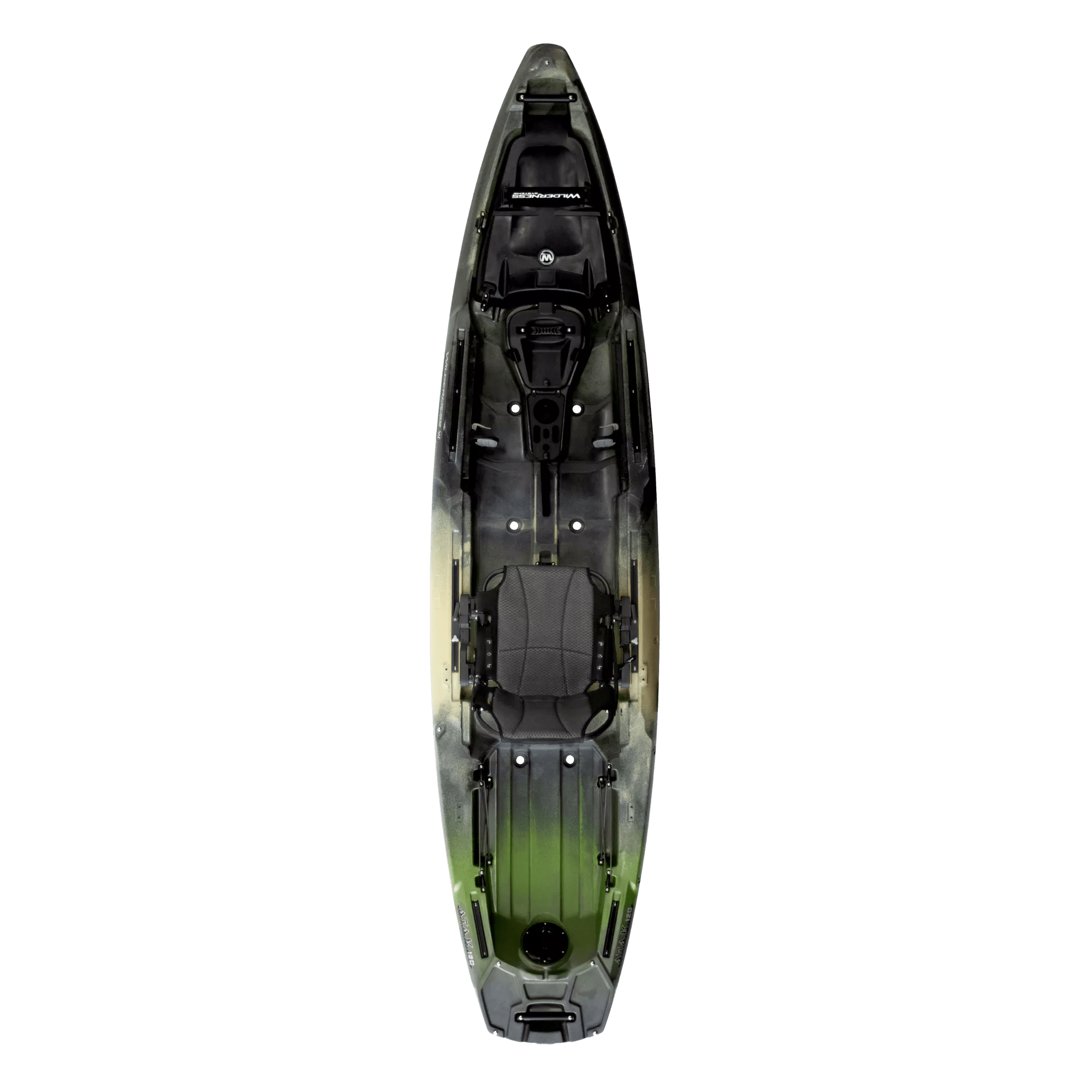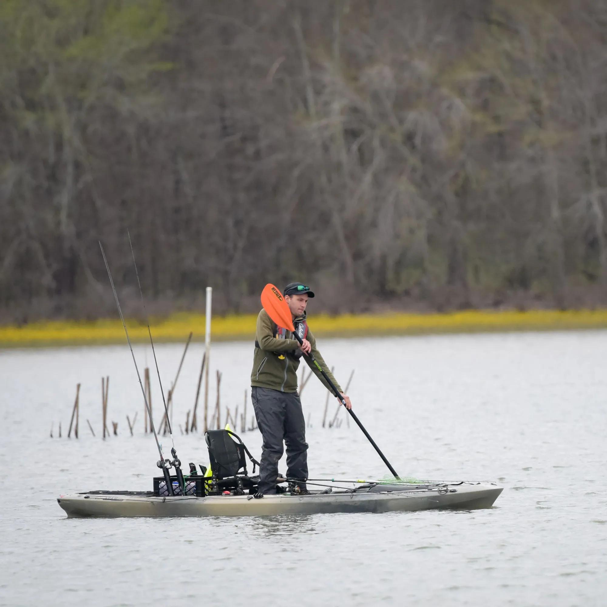 Équipé d'un capot de proue, d'un parc à pagaies, de rails SlideTrax, d'une console Flex Pod, d'un bac à outils central et d'un grand compartiment arrière, le kayak vous offre beaucoup d'espace de rangement de matériel et vous laisse les mains libres pour pêcher.