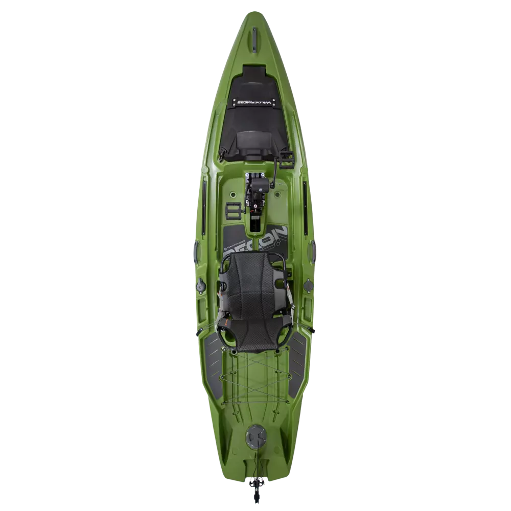 Que vous soyez novice ou expert, le Recon est un kayak de pêche pré-équipé que vous pouvez personnaliser. Avec une plateforme ouverte entièrement personnalisable, un siège AirPro ACES pivotant à 360 degrés, et la liberté de choisir le mode de propulsion préféré - pagaie, pédale, ou moteur - la série de kayaks Recon offre une pêche en toute confiance. (Remarque : Ce modèle est livré avec le système de propulsion à pédale Helix PD™ déjà installé.) Des moteurs après-vente peuvent également être installés avec une interface de montage direct à l'arrière du bateau.